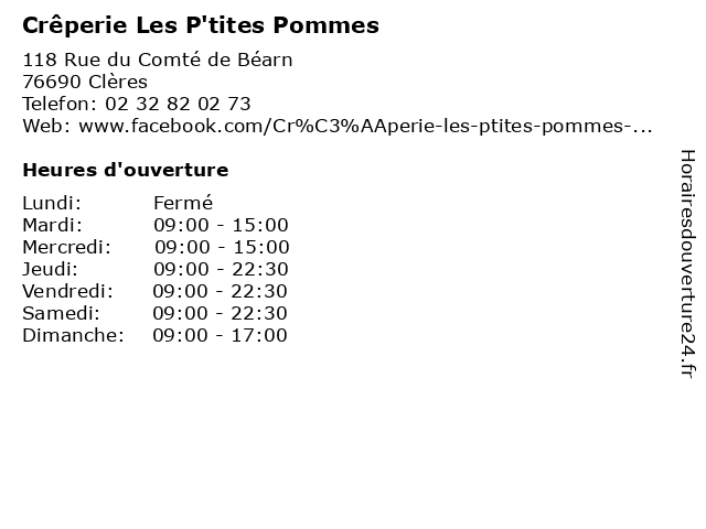 | Lundi | Fermé |