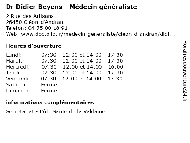 Termes de recherche pour Dr Didier Beyens - Médecin généraliste:didier, med, medecine, secretariat, traitement, généraliste, docteur, médecin, consultation, dr, beyens |