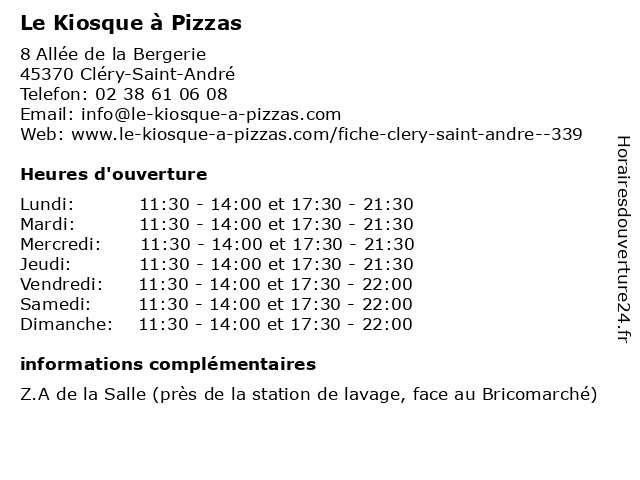 | Dimanche | 11:30-14:00 et 17:30-22:00 |
