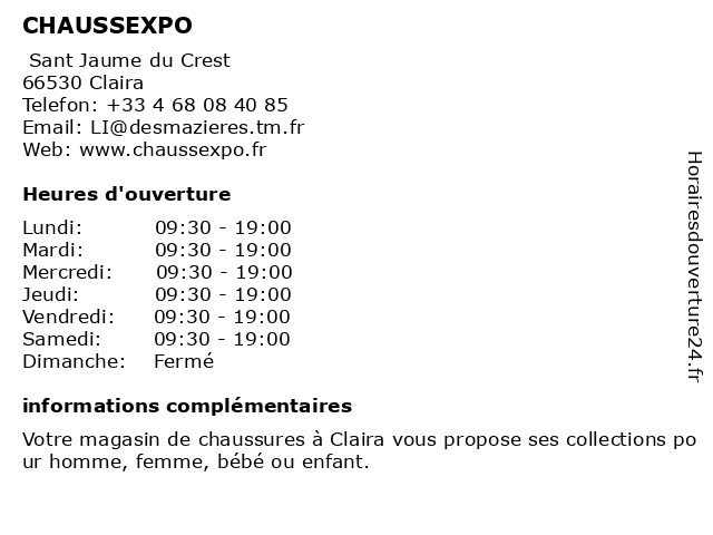 1 CHAUSSEXPO (Distance: 19,43 km) 9 Avenue de la padrouze, 66300 Thuir baskets, bottes, bottines, chaussexpo, chaussons, chaussure bébé, chaussure enfant, chaussure femme, chaussure homme, chaussure travail, derbies 2 Courir (Distance: 0,58 km) - route Departementale 83, 66530 Claira baskets, chaussures, courir, mode, tennis 3 Courir (Distance: 3,52 km) . Route 83, 66530 Claira bottes, bottines, chaussettes, chaussures, courir, femme, homme 4 Pimkie (Distance: 5,03 km) 2130 Avenue du Languedoc, 66000 Perpignan accessoires, chaussure, femme, mode, pimkie, vêtements 5 JACADI PERPIGNAN ANGE (Distance: 8,34 km) 25 Rue de l'Ange, 66000 Perpignan ange, chaussure fille, chaussures garçon, jacadi, manteau fille, perpignan, robe fille, vêtements bébé fille, vêtements bébé garçon, vêtements enfant, vêtements fille, vêtements garçon, vêtements naissance 6 Kiabi (Distance: 11,25 km) . Route d'Espagne, 66000 Perpignan accessoires, chaussure, kiabi, mode, vêtements |