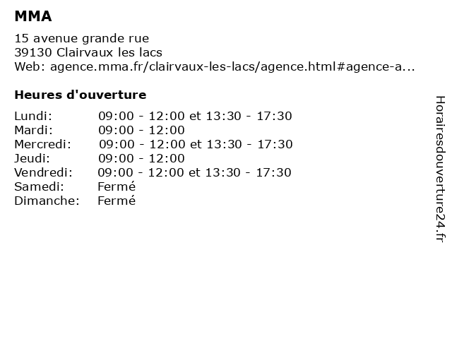 | Lundi | 09:00-12:00 et 13:30-17:30 |