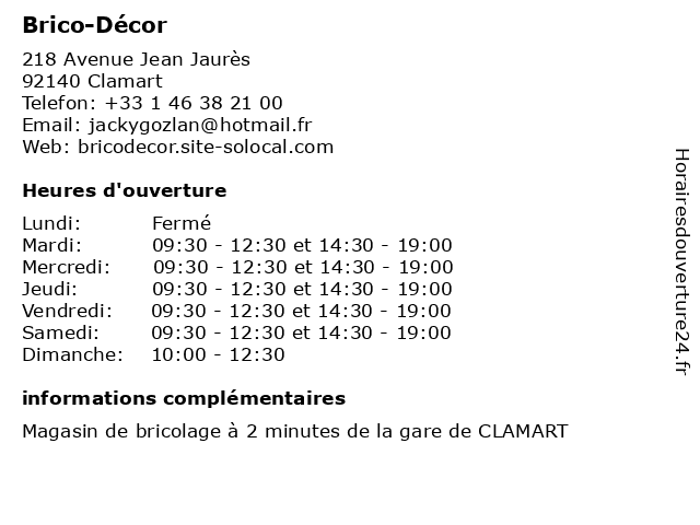 | Mardi | 09:30-12:30 et 14:30-19:00 |