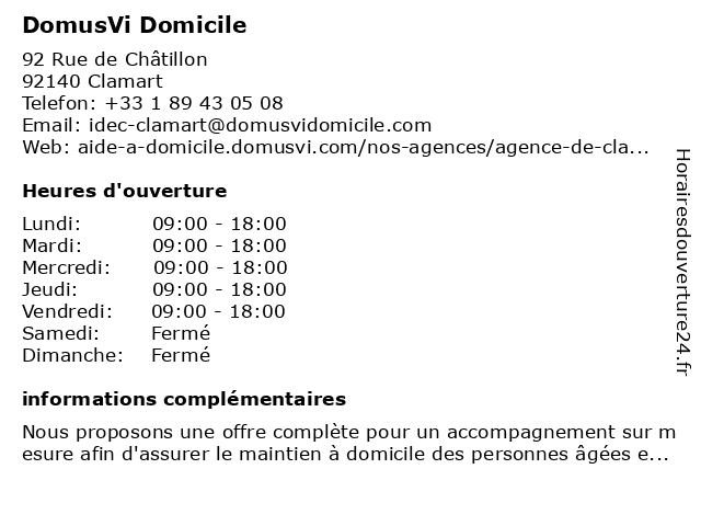 1 DomusVi Domicile (Distance: 1,20 km)227 Avenue Victor Hugo, 92140 Clamart domicile, domusvi
