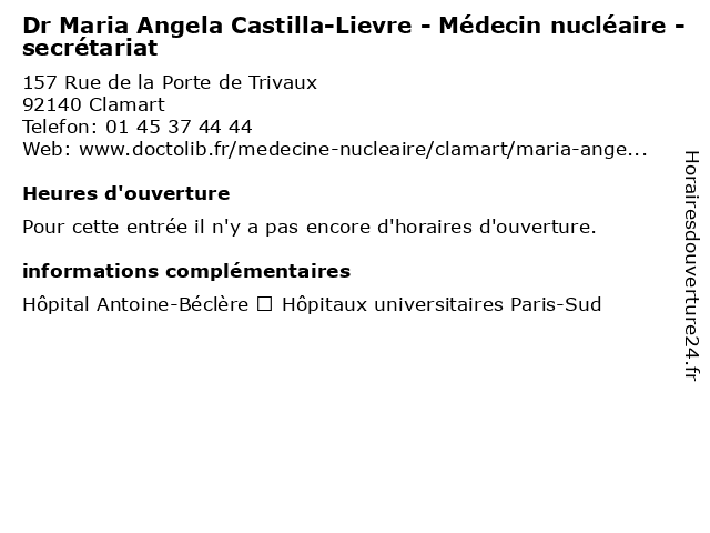 | Appeler Dr Maria Angela Castilla-Lievre - Médecin nucléaire - secrétariat | |