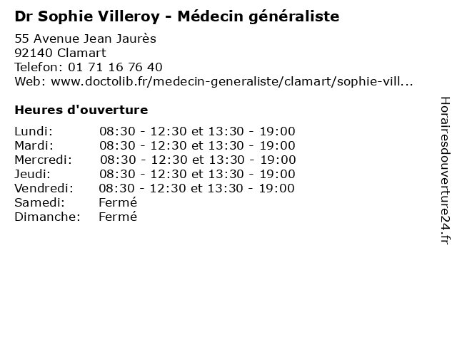 | Mercredi | 08:30-12:30 et 13:30-19:00 |