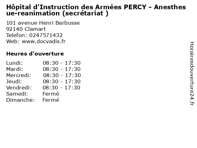 1 Hôpital d'instruction des Armées PERCY (CLAMART) (Distance: 0,00 km) 101 Avenue Henri Barbusse, 92140 Clamant armées, clamart, d'instruction, des, docteur, hôpital, medecins, percy, sante 2 HIA Percy - Médecine générale (Consultation libre) (Distance: 0,00 km) 101 avenue Henri Barbusse, 92141 Clamart consultation, docteur, générale, hia, libre, médecine, percy, santé 3 Hématologie Percy - Hématologie (secrétariat ) (Distance: 0,00 km) 101 avenue Henri Barbusse, 92140 Clamart consultation, docteur, hématologie, percy, santé, secrétariat 4 Hôpital d'Instruction des Armées PERCY - Hématologie (secrétariat ) (Distance: 0,00 km) 101 avenue Henri Barbusse, 92140 Clamart armées, consultation, d'instruction, des, docteur, hématologie, hôpital, percy, santé, secrétariat 5 Hôpital d'Instruction des Armées PERCY - Pneumologie (secrétariat ) (Distance: 0,00 km) 101 avenue Henri Barbusse, 92140 Clamart armées, consultation, d'instruction, des, docteur, hôpital, percy, pneumologie, santé, secrétariat 6 HIA PERCY - Oto-rhino-laryngologie (secrétariat ) (Distance: 0,00 km) 101 avenue Henri Barbusse, 92141 Clamart consultation, docteur, hia, jean, laryngologie, michel, ophtalmologie, oto, percy, raymond, rendez, rhino, santé, secrétariat, sur, vous |