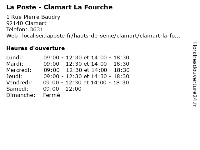 Termes de recherche pour La Poste - Clamart La Fourche:poste, relais, la, clamart, agence, postale, colis, expédition, courriers, fourche |