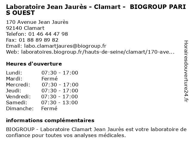 Termes de recherche pour Laboratoire Jean Jaurès - Clamart - BIOGROUP PARIS OUEST:clamart, paris, jean, laboratoire, jaures, ouest, biogroup, dépistages, laboratoire de diagnostic |