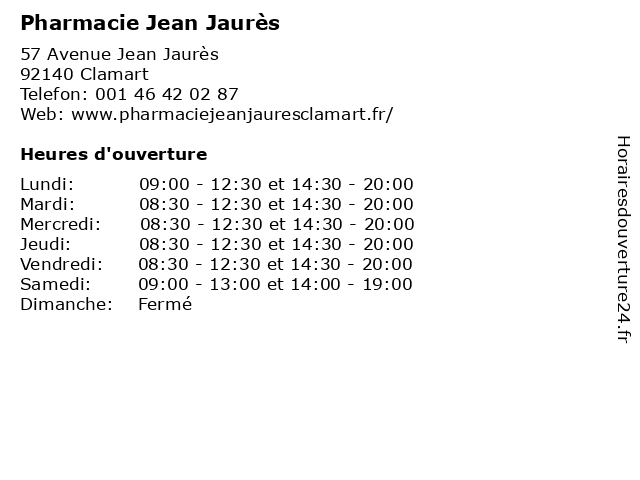 | Jeudi | 08:30-12:30 et 14:30-20:00 |