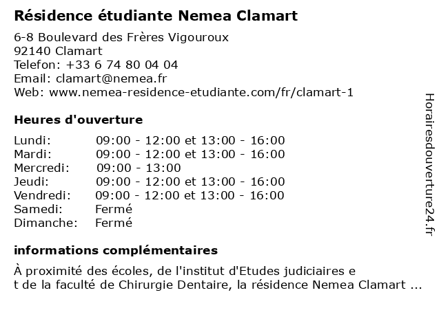 | Lundi | 09:00-12:00 et 13:00-16:00 |
