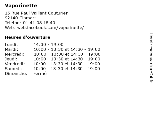 | Mardi | 10:00-13:30 et 14:30-19:00 |