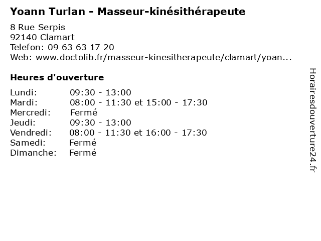 | Mardi | 08:00-11:30 et 15:00-17:30 |