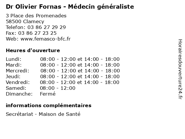 | Mercredi | 08:00-12:00 et 14:00-18:00 |
