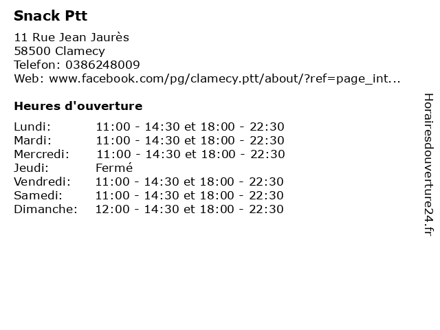 | Mardi | 11:00-14:30 et 18:00-22:30 |
