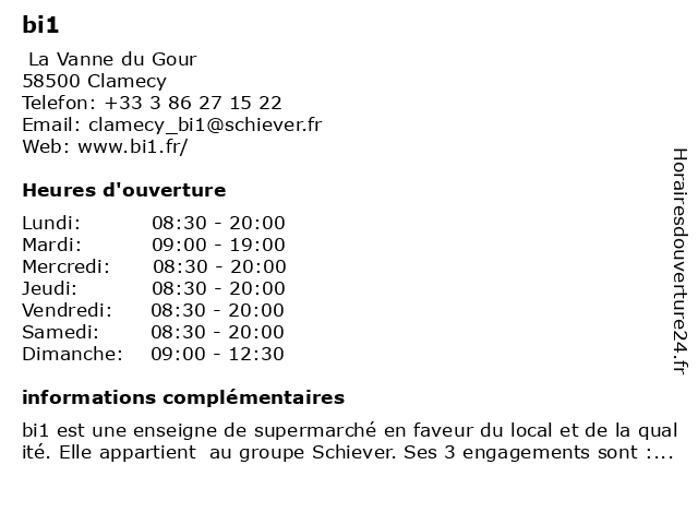| Samedi | 08:30-20:00 |