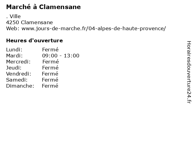 1 Marché á La Motte-du-Caire (Distance: 0,00 km) . Ville, 04250 La Motte-du-Caire caire, du, frutas, hortalizas, la, marché, mercado, motte, verduras 2 Marché à Tallard (Distance: 13,35 km) . Place Dumont, 05130 Tallard frutas, hortalizas, marché, mercado, tallard, verduras 3 Les Copains du Marché (Distance: 15,89 km) 12 Grande Rue, 04200 Mison alimentaire, copains, du, fruits, les, légumes, magasin, marché, épicerie 4 Marché à Eyguians (Distance: 16,67 km) . Ville, 05300 Eyguians eyguians, frutas, hortalizas, marché, mercado, verduras 5 Marché à Laragne-Montéglin (Distance: 16,67 km) . Ville, 05300 Laragne-Montéglin frutas, hortalizas, laragne, marché, mercado, montéglin, verduras 6 Marché á Sisteron (Distance: 17,60 km) . Place de l'Horloge, 04200 Sisteron frutas, hortalizas, marché, mercado, sisteron, verduras |