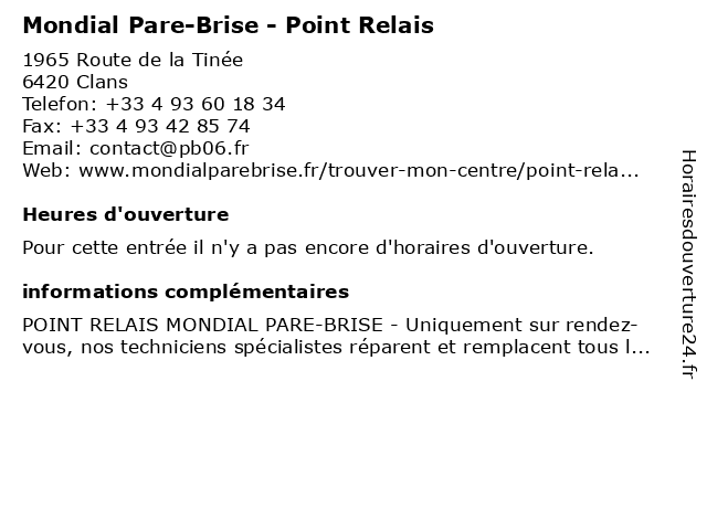 | Appeler Mondial Pare-Brise - Point Relais | |