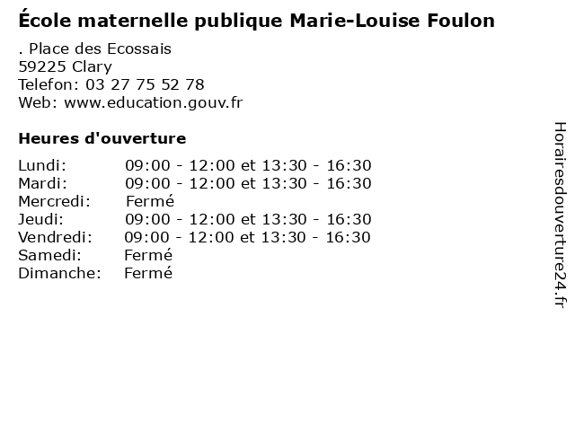 | Mardi | 09:00-12:00 et 13:30-16:30 |