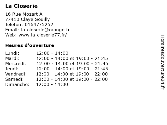 Termes de recherche pour La Closerie:restauration, restaurant, la, café, bar, bistrot, brasserie, pub, resto, bistro, closerie |