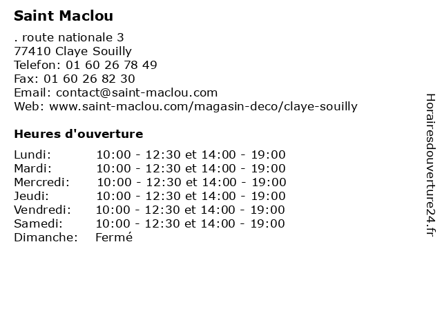 | Samedi | 10:00-12:30 et 14:00-19:00 |