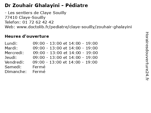 | Mardi | 09:00-13:00 et 14:00-19:00 |