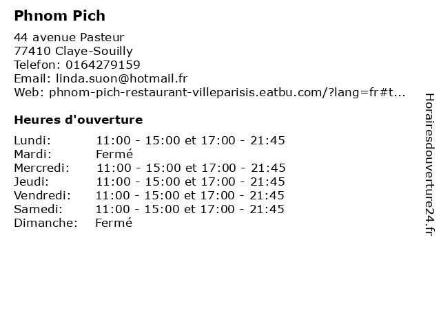 | Mercredi | 11:00-15:00 et 17:00-21:45 |