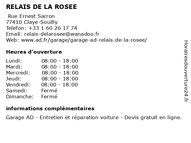 1 TotalEnergies - SARL ETS BLOM / STATION DE LA ROSEE (Distance: 0,05 km) 212 Chemin dit Ancien Pavé de Compans, 77410 Claye-Souilly blom, de, ets, gas station, la, rosee, sarl, station, station service, tankstelle, total, totalenergies 2 Point S - Sysanh Express Auto (Distance: 0,10 km) 6 rue Ernest Sarron, 77410 Claye Souilly amortisseur, auto, echappement, express, freinage, pneu, point, revision, sysanh 3 France Courroie (Distance: 13,88 km) 13 bis Allée du Clos des Charmes, 77090 Collégien courroie, courroies, france, transmission, variateurs, vente 4 AD CARROSSERIE CV CARROSSERIE (Distance: 16,75 km) 15 Rue Boudry, 77700 Bailly-Romainvilliers ad, carrosserie, courroie de distribution, cv, devis réparation voiture, entretien auto, garage, revision voiture, réparateur voiture, réparation carrosserie, vidange 5 AD CARROSSERIE ERS AUTO (Distance: 18,87 km) 65 Rue Maurice Berteaux, 93120 La Courneuve ad, auto, carrosserie, courroie de distribution, devis réparation voiture, entretien auto, ers, garage, revision voiture, réparateur voiture, réparation carrosserie, vidange 6 AFDS AUTO (Distance: 19,70 km) 10 Rue Jean Mermoz, 77174 Villeneuve-le-Comte ad, afds, auto, courroie de distribution, devis réparation voiture, entretien auto, garage, revision voiture, réparateur voiture, réparation carrosserie, vidange |
