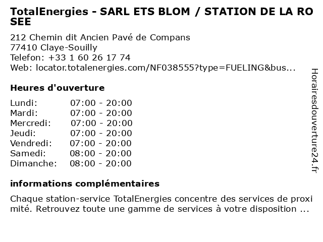 Termes de recherche pour TotalEnergies - SARL ETS BLOM / STATION DE LA ROSEE:la, de, ets, sarl, station, total, blom, gas station, rosée, station service, tankstelle, totalenergies |