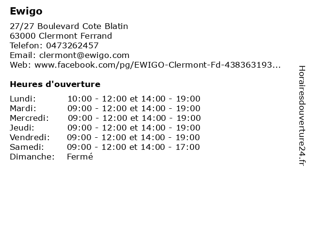 Lundi | 10:00-12:00 et 14:00-19:00 |