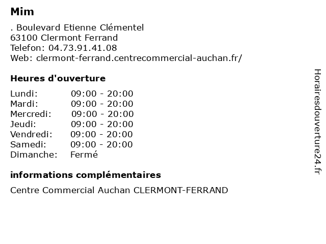 1 MIM (Distance: 7,25 km) . Route de l Europe, 63370 Lempdes accessoires, chaussures, hauts, lingerie, mim, pantalon 2 Abi Center (Distance: 0,00 km) . Boulevard Etienne Clémentel, 63100 Clermont Ferrand abi, beaute, boutiques, center, chaussures, deco, enfants, mode femme, mode hommes, restaurant, sport 3 Amandine (Distance: 0,00 km) . Boulevard Etienne Clémentel, 63100 Clermont Ferrand amandine, beaute, boutiques, chaussures, deco, enfants, mode femme, mode hommes, restaurant, sport 4 Auchan Services (Distance: 0,00 km) . Boulevard Etienne Clémentel, 63100 Clermont Ferrand auchan, beaute, boutiques, chaussures, deco, enfants, mode femme, mode hommes, restaurant, services, sport 5 Brice (Distance: 0,00 km) . Boulevard Etienne Clémentel, 63100 Clermont Ferrand beaute, boutiques, brice, chaussures, deco, enfants, mode femme, mode hommes, restaurant, sport 6 Centre Médical et Services (Distance: 0,00 km) . Boulevard Etienne Clémentel, 63100 Clermont Ferrand beaute, boutiques, centre, chaussures, deco, enfants, et, mode femme, mode hommes, médical, restaurant, services, sport |