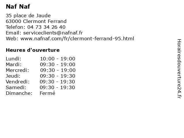 1 Naf Naf (Distance: 3,08 km) - centre commercial Nacarat, 63100 Clermont-Ferrand accessoires, habillement, mode, naf, nafnaf, vetements 2 Naf Naf (Distance: 46,85 km) 19 rue Georges Clémenceau, 03200 Vichy accessoires, habillement, mode, naf, vetements 3 Moa (Distance: 0,03 km) 29 Place de Jaude, 63000 Clermont-Ferrand accessoires, bijoux, femme, moa, mode 4 San Marina (Distance: 0,03 km) 27 Place Jaude, 63000 Clermont-Ferrand accessoires, chaussures, enfant, femme, homme, marina, san, san marina 5 Gerard Darel (Distance: 0,06 km) 25 Place de Jaude, 63037 Clermont Ferrand accessoires, boutique, darel, gerard, mode, vetements 6 The Kooples (Distance: 0,06 km) 25 Place de Jaude, 63000 Clermont-Ferrand accessoires, habilement, kooples, mode, prêt à porter, the, vêtements |
