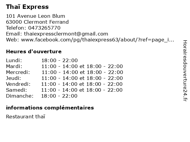 | Jeudi | 11:00-14:00 et 18:00-22:00 |