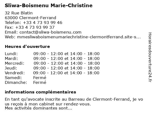 | Lundi | 09:00-12:00 et 14:00-18:00 |