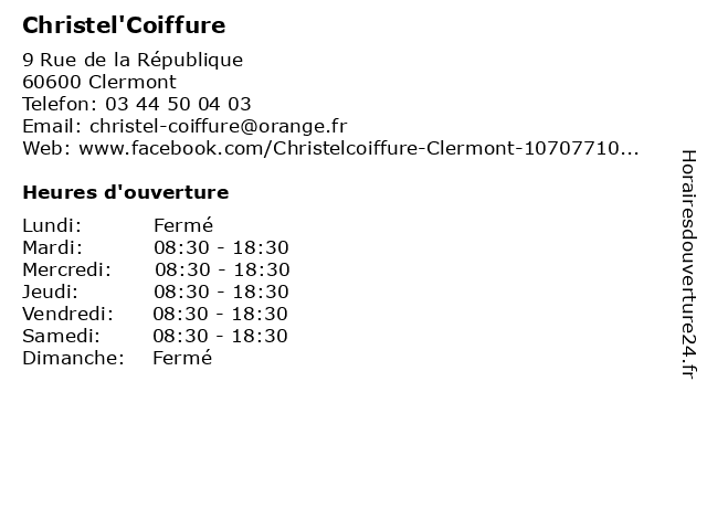 1 Fun Coiffure (Distance: 0,04 km) 4 rue des Fontaines, 60600 Clermont coiffeur, coiffure, coloration, coupe, fun, shampooing 3 Tchip Coiffure (Distance: 1,10 km) - Avenue des Déportés, 60600 Clermont sur Oise beaute, coiffure, salon, tchip 5 Afro Tifani Coiffure (Distance: 13,22 km) 18 place du Général de Gaulle, 60100 Creil afro, coiffeur, coiffure, coupe, tifani, tresses 6 Sublime Afro Coiffure (Distance: 13,36 km) 80 bis Rue Victor Hugo, 60100 Creil afro, beauté, coiffure, salon, style, sublime |