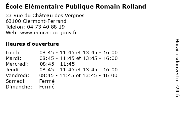| Lundi | 08:45-11:45 et 13:45-16:00 |