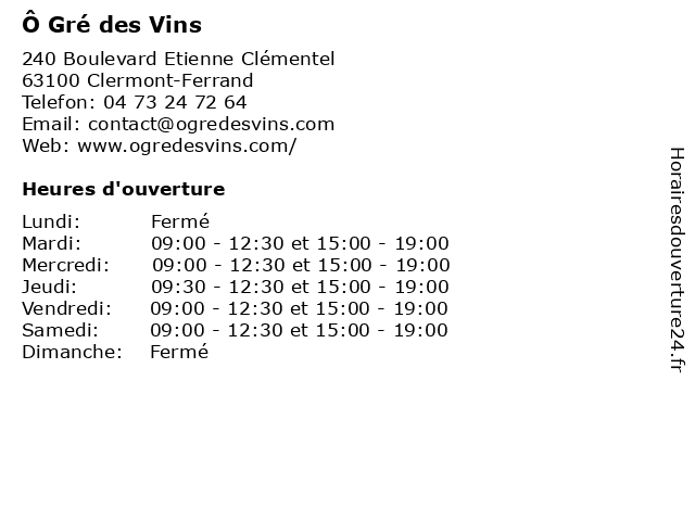 | Lundi | Fermé |