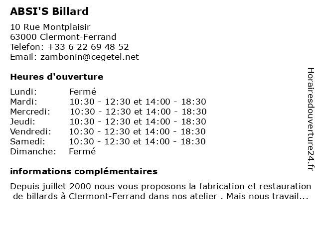 Images pour l'entreprise ABSI'S Billard à Clermont-Ferrand