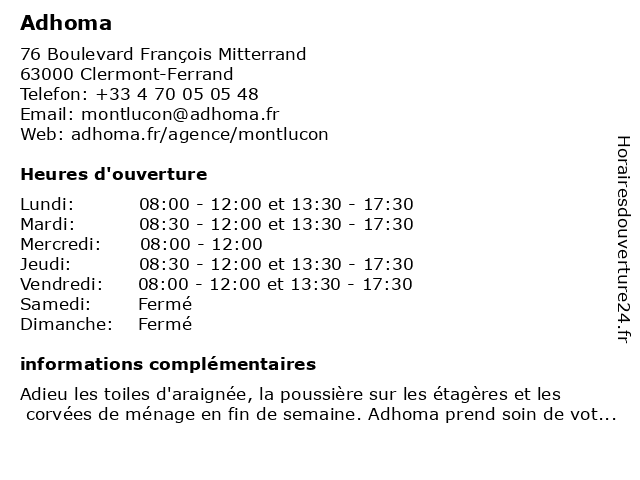 1 Adhoma (Distance: 0,39 km) 4 rue Lagarlaye, 63000 Clermont-Ferrand adhoma, aide, domicile, jardinage, ménage, repassage, service 3 Adhoma (Distance: 28,08 km) 7 Rue de la Place d'Espagne, 63500 Issoire adhoma, aide, domicile, jardinage, ménage, repassage, service |