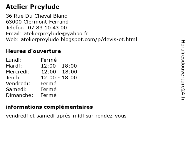 1 ATELIER DES VOYAGES (Distance: 0,16 km) 16 Avenue des États Unis, 63000 Clermont-Ferrand atelier, des, voyages 3 L'Atelier de Marius - Restaurant (Distance: 0,70 km) 6 Place Delille, 63000 Clermont-Ferrand atelier, clermont-ferrand, cuisine, de, déjeuner, dîner, l'atelier, marius, repas, restaurant 4 L'Atelier Gonzag (Distance: 0,98 km) 22 Boulevard Lavoisier, 63000 Clermont-Ferrand beauté, coiffure, couleur, gonzag, l'atelier 5 L'Atelier de Gravure (Distance: 1,56 km) 10 rue Poncillon, 63000 Clermont Ferrand de, gravure, l'atelier, métallerie, serrurerie 6 Ford DUGAT Automobiles - Atelier de Carrosserie (Distance: 3,44 km) 23-25 Avenue de l'Agriculture, 63100 Clermont Ferrand atelier, automobiles, carrosserie, de, dugat, entretien, ford, révisions, services d'automobiles, vidanges |