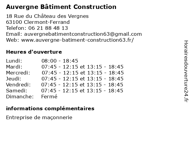 | Lundi | 08:00-18:45 |