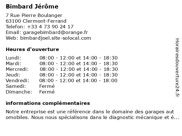 | Lundi | 08:00-12:00 et 14:00-18:30 |