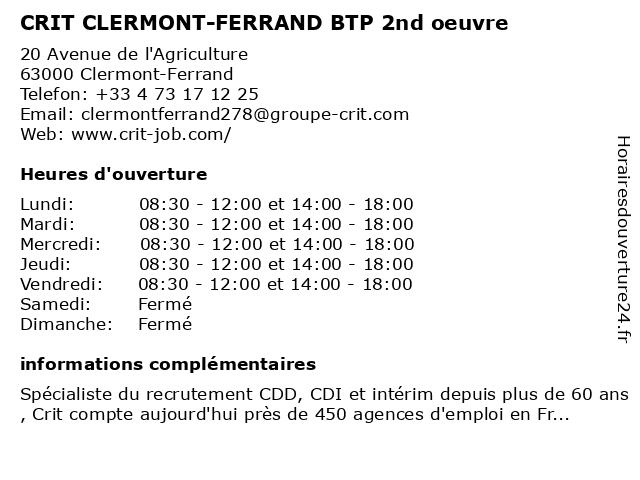 Termes de recherche pour CRIT CLERMONT-FERRAND BTP 2nd oeuvre:clermont, ferrand, btp, oeuvre, 2nd, crit |