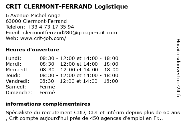 Termes de recherche pour CRIT CLERMONT-FERRAND Logistique:clermont, ferrand, logistique, crit |