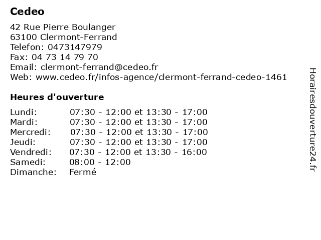 | Lundi | 07:30-12:00 et 13:30-17:00 |