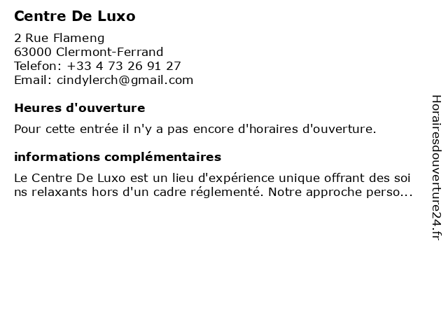 1 Equilibre & Bien-Etre - Cabinet de Luxo (Distance: 2,27 km) 31 rue Gonod, 63000 Clermont-Ferrand bien, cabinet, cornuault, de, equilibre, etre, gestion, le, luxo, luxopuncture, poids, stress, thomas |