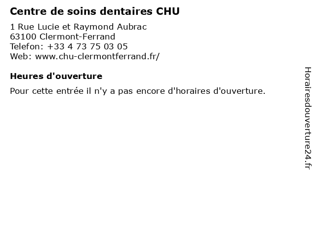 | Appeler Centre de soins dentaires CHU | |