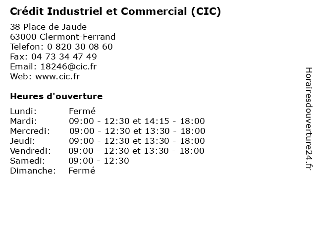 | Mercredi | 09:00-12:30 et 13:30-18:00 |