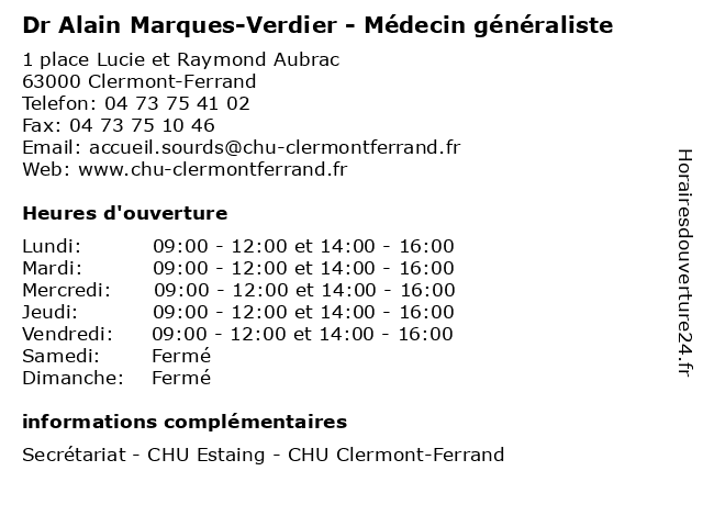 1 Dr François-Alain Rance - Gastro-entérologue et hépatologue (Distance: 0,44 km) 105 Avenue de la République, 63100 Clermont-Ferrand alain, consultation, docteur, dr, entérologue, et, francois, françois, gastro, hépatologue, med, médecin, médecine, rance, traitement 2 Loureiro Da Silva Marques Deolinda (Distance: 0,95 km) 46 Rue De Chanteranne, 63100 Clermont Ferrand da, deolinda, loureiro, marques, restaurants, silva 3 ALAIN SAHUT FUNERAIRE (Distance: 1,00 km) 55 Rue Saint Robert, 63000 Clermont-Ferrand alain, avis de décès, crémation, entretien de sépulture, fleurs deuil, formalités après obsèques, funeraire, inhumation, marbrerie, monument funéraire, pompes funèbres, prévoyance obsèques, sahut 4 Dr Alain Gratuze - Médecin du travail (Distance: 1,18 km) 1 rue des Frères Lumière, 63000 Clermont-Ferrand alain, consultation, docteur, dr, du, gratuze, med, médecin, traitement, travail 5 Dr Alain Gaillard - Médecin généraliste (Distance: 1,18 km) 1 rue des Frères Lumière, 63000 Clermont-Ferrand alain, consultation, docteur, dr, gaillard, généraliste, med, médecin, traitement 6 Gédimat Boulard Verdier (Distance: 1,41 km) 20 Rue Jules Verne, 63100 Clermont-Ferrand boulard, construction, gedimat, gédimat, matériaux, produits, verdier |