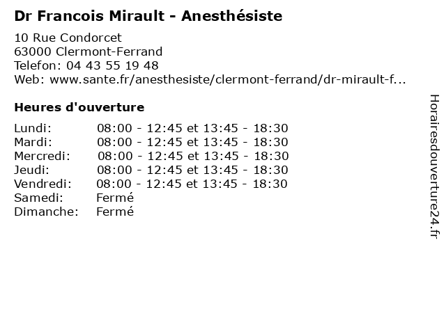 | Lundi | 08:00-12:45 et 13:45-18:30 |