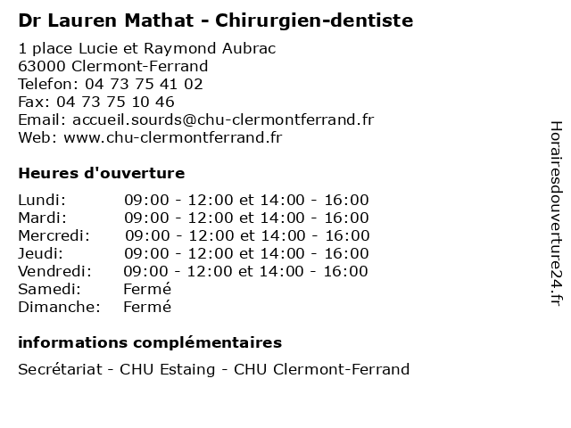 | Lundi | 09:00-12:00 et 14:00-16:00 |